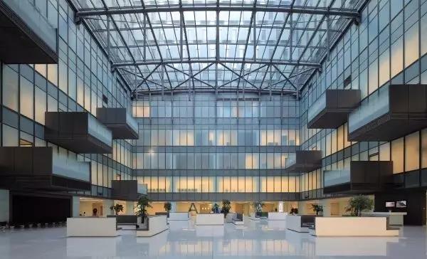 大廳采用吸聲吊頂減輕大尺度公共空間里的噪音