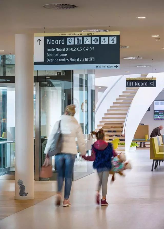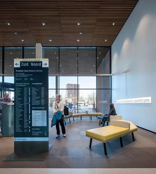 為了解決這個(gè)問題,Zaans Medisch Centrum設(shè)計(jì)團(tuán)隊(duì)從醫(yī)院入口到內(nèi)部,全程做好導(dǎo)視標(biāo)牌的點(diǎn)位布置。